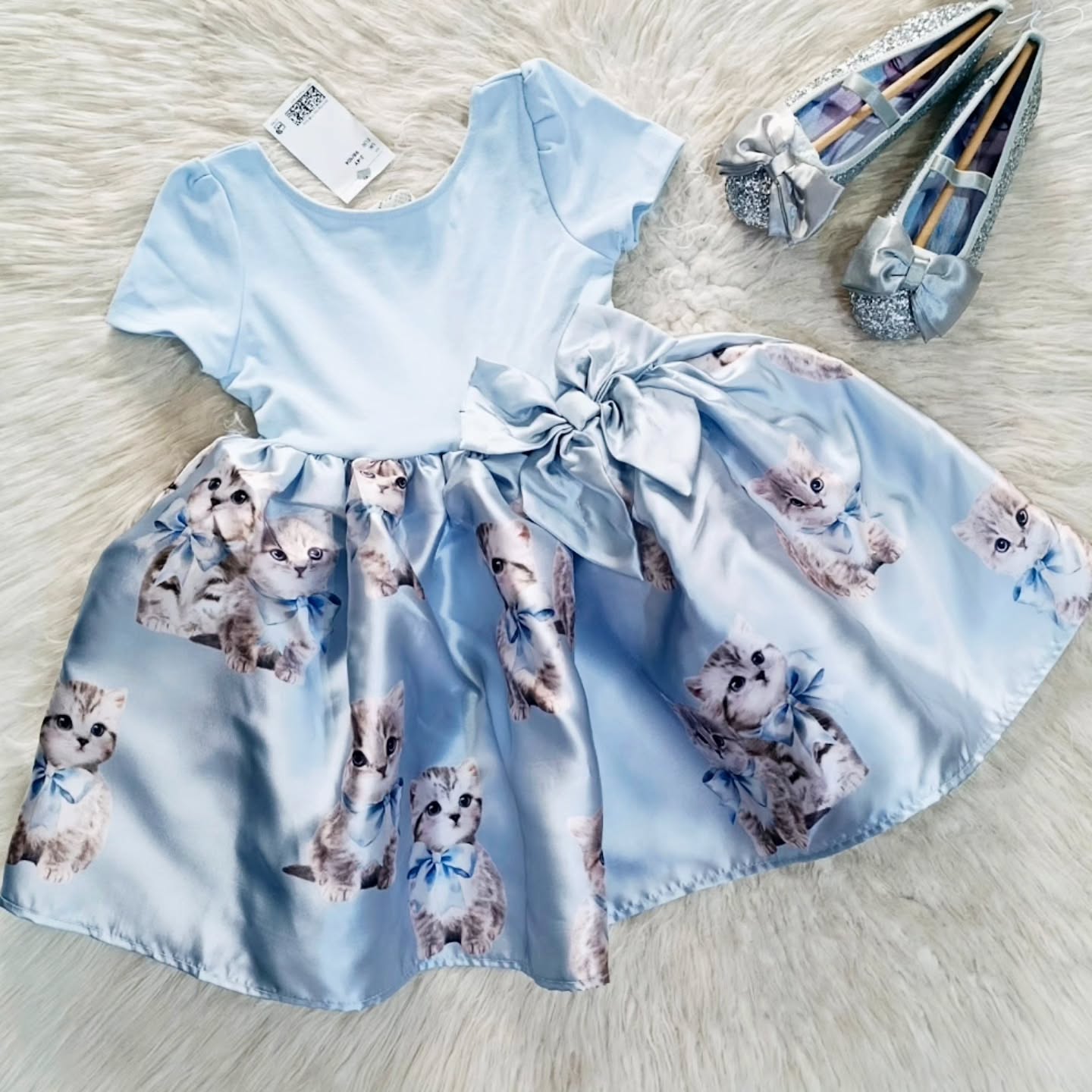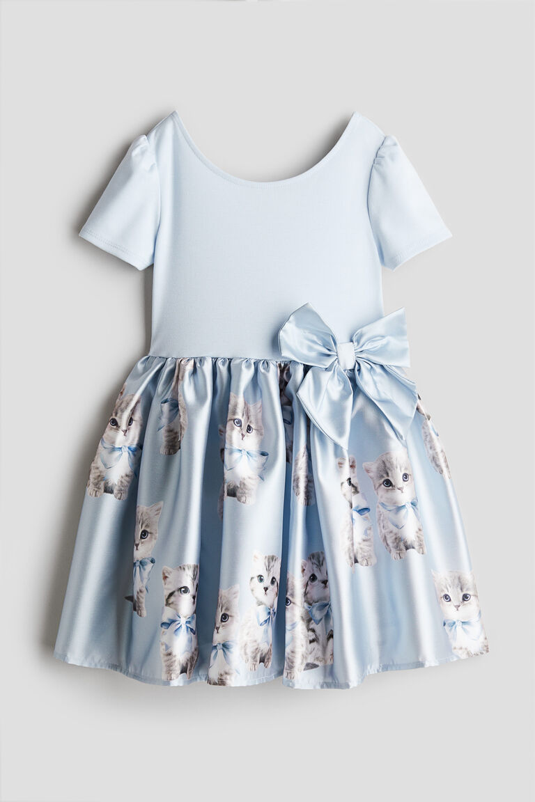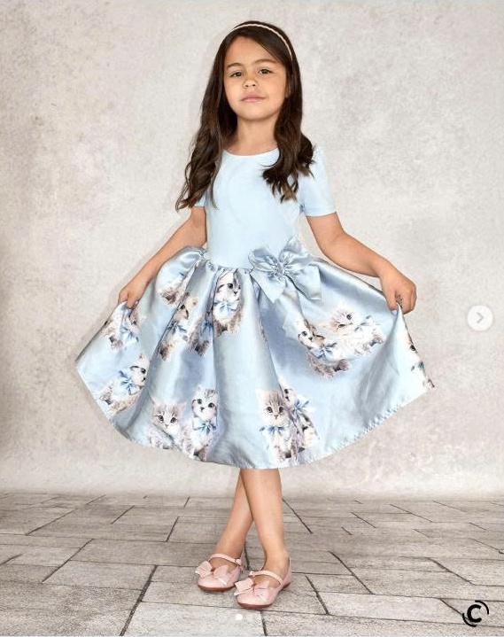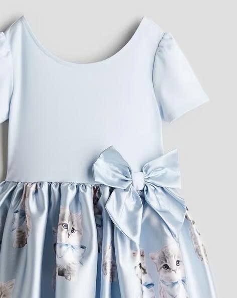 Đầm xanh mèo phối nơ eo hàng H&M xuất xịn cho bé