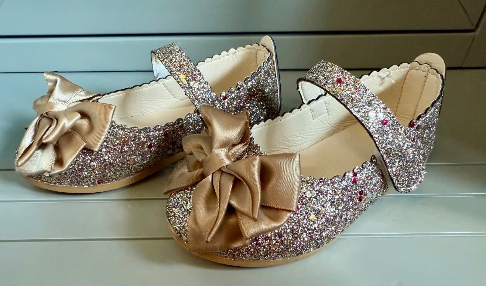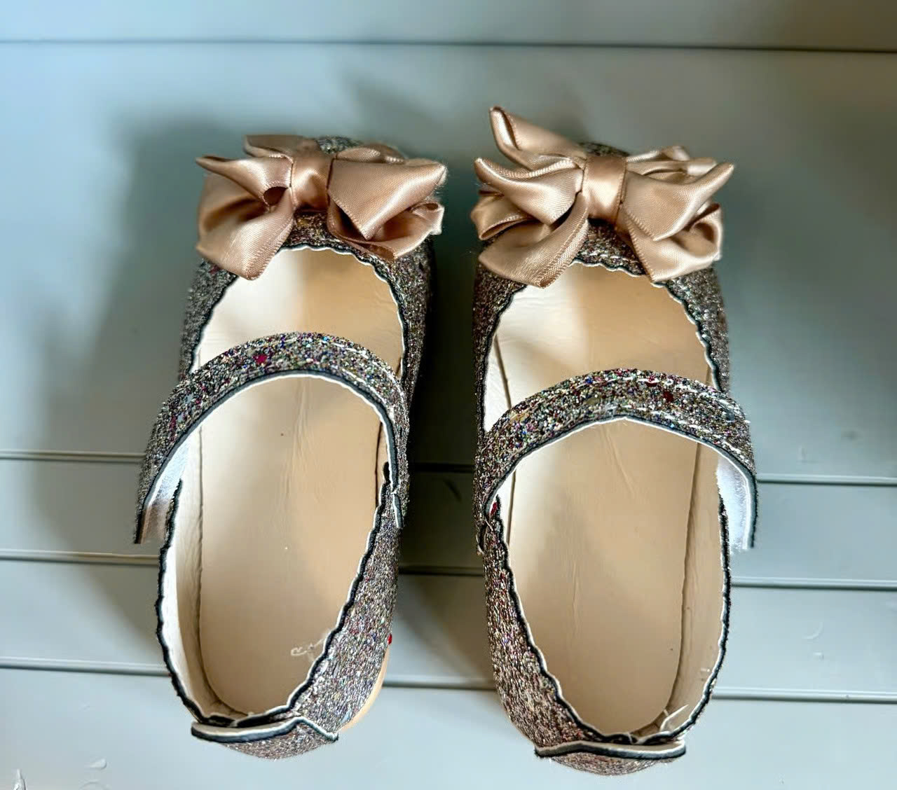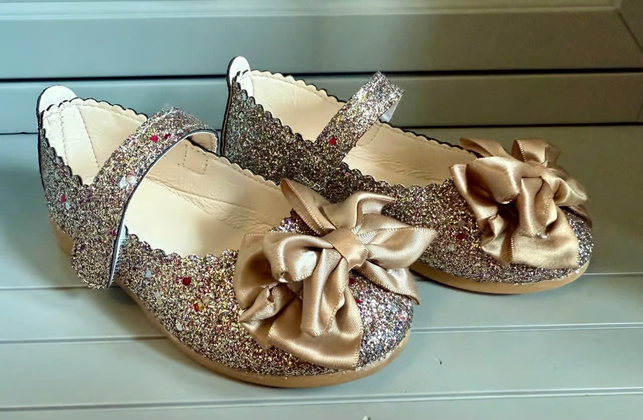 Giày búp bê nhũ màu phối nơ cho bé - 215K